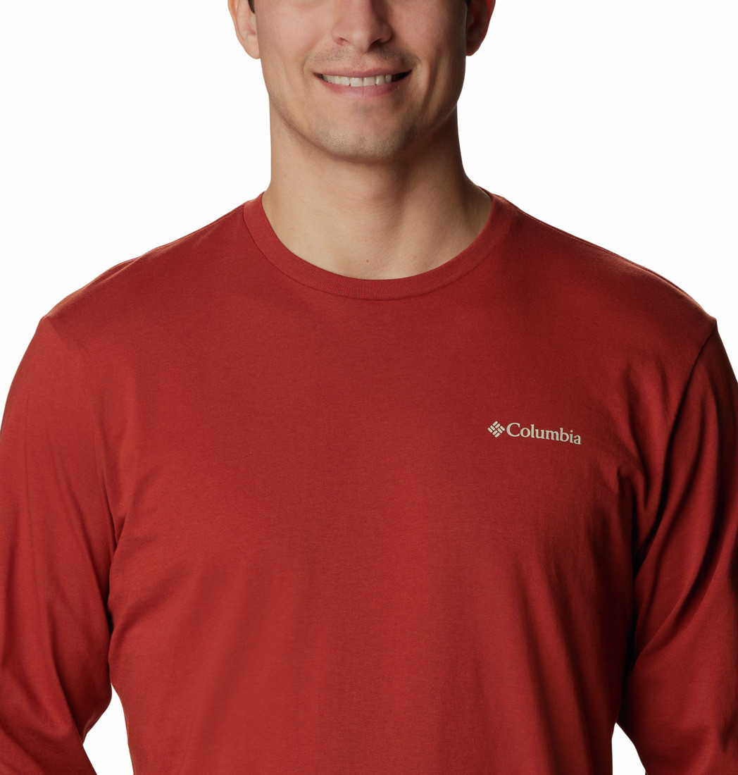COMFORT STRETCH: A classic long sleeve with the Columbia logo, this tee is ready for year-round activity.