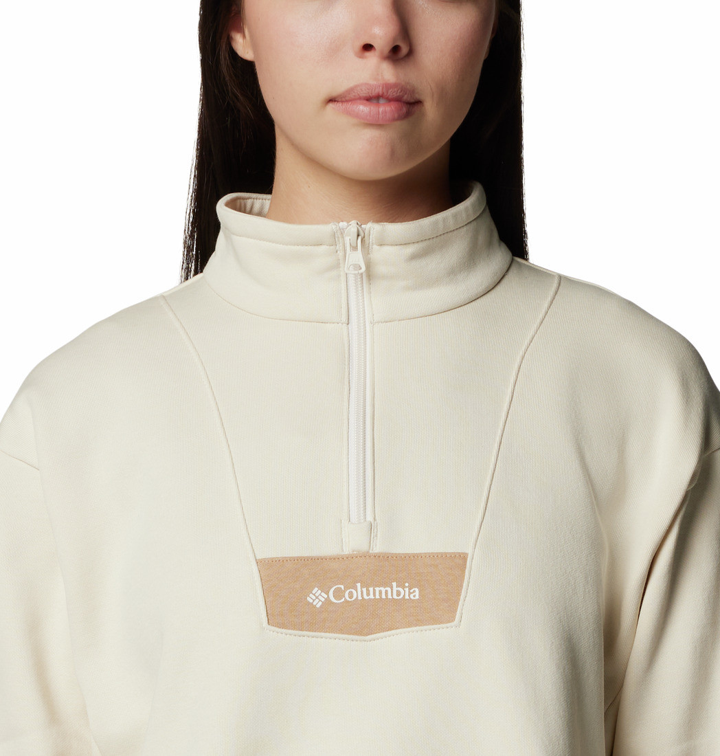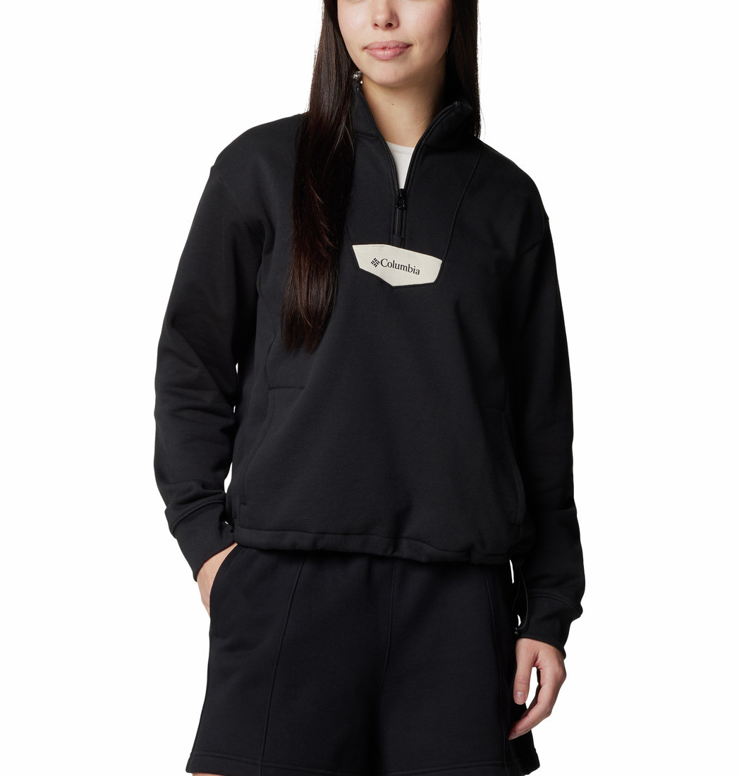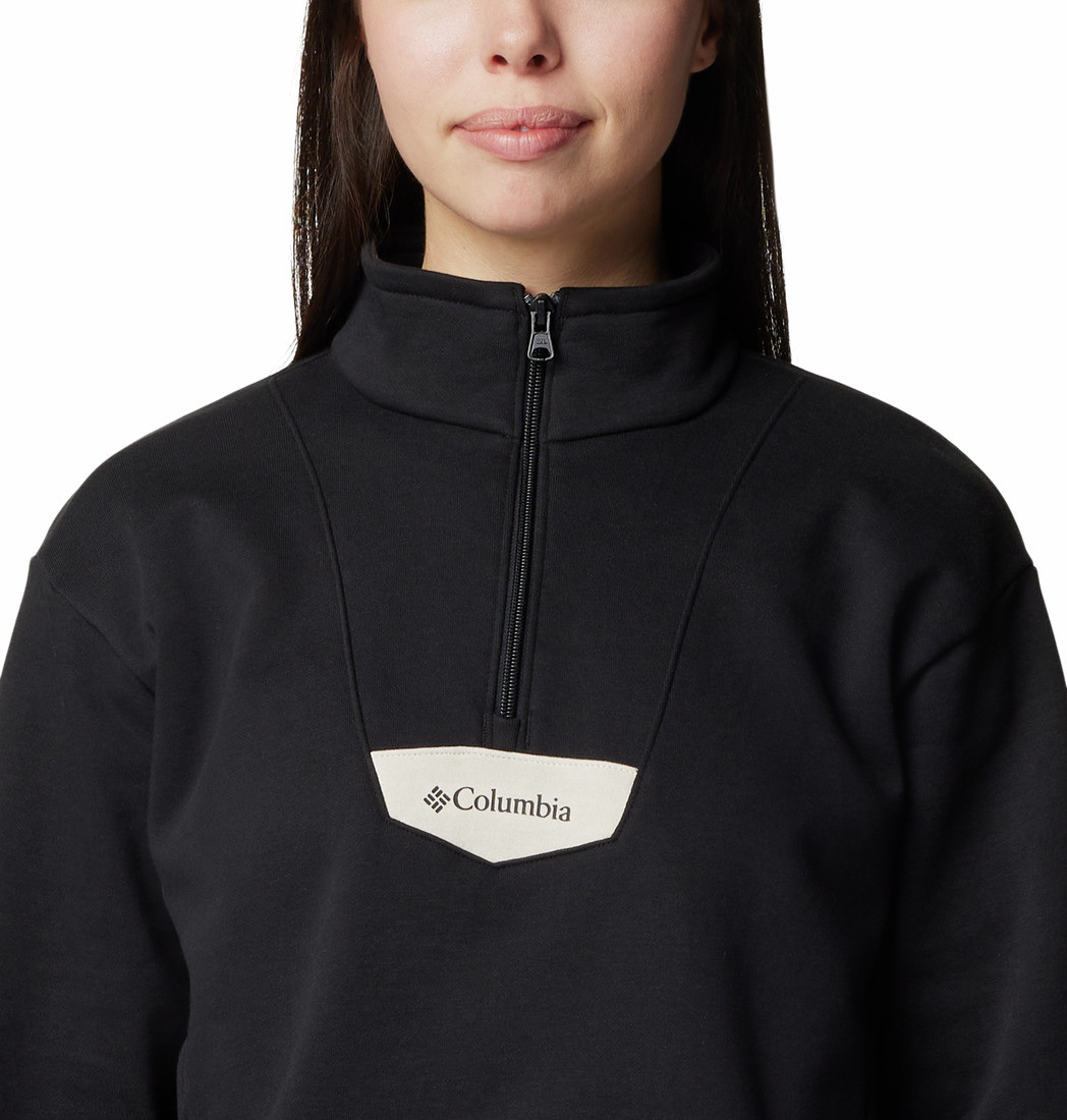 Comfortable and classic. This half-zip features soft cotton-blend fabric, and cozy ribbed cuffs.