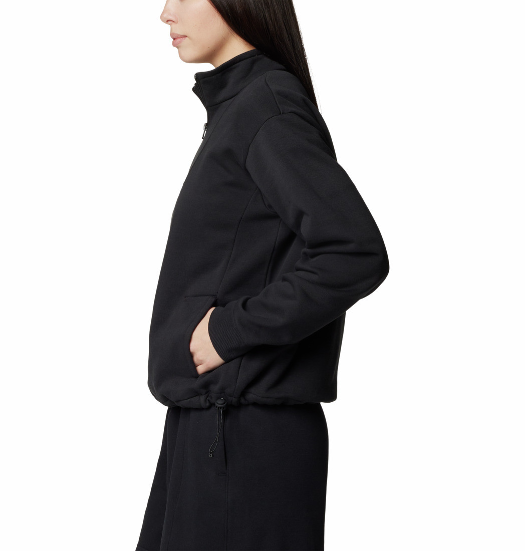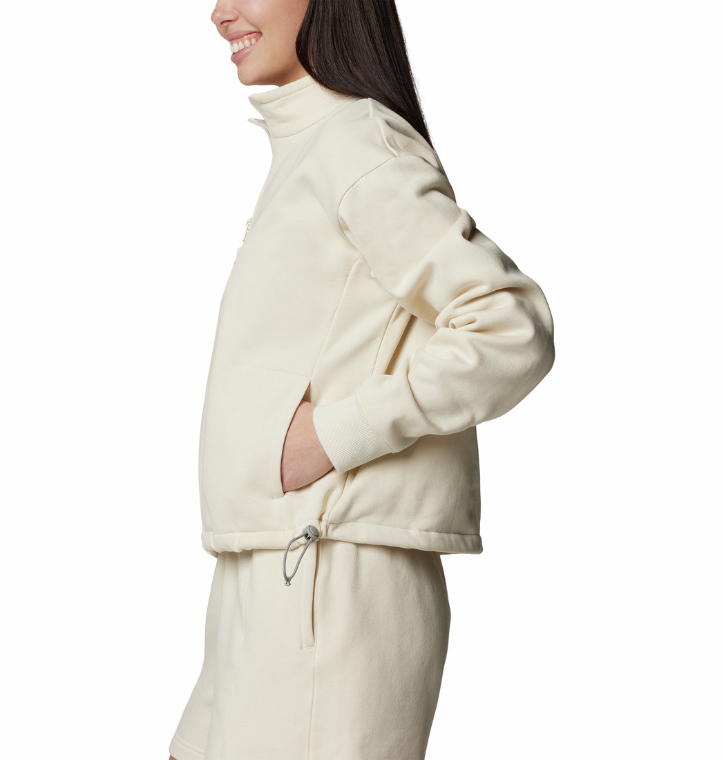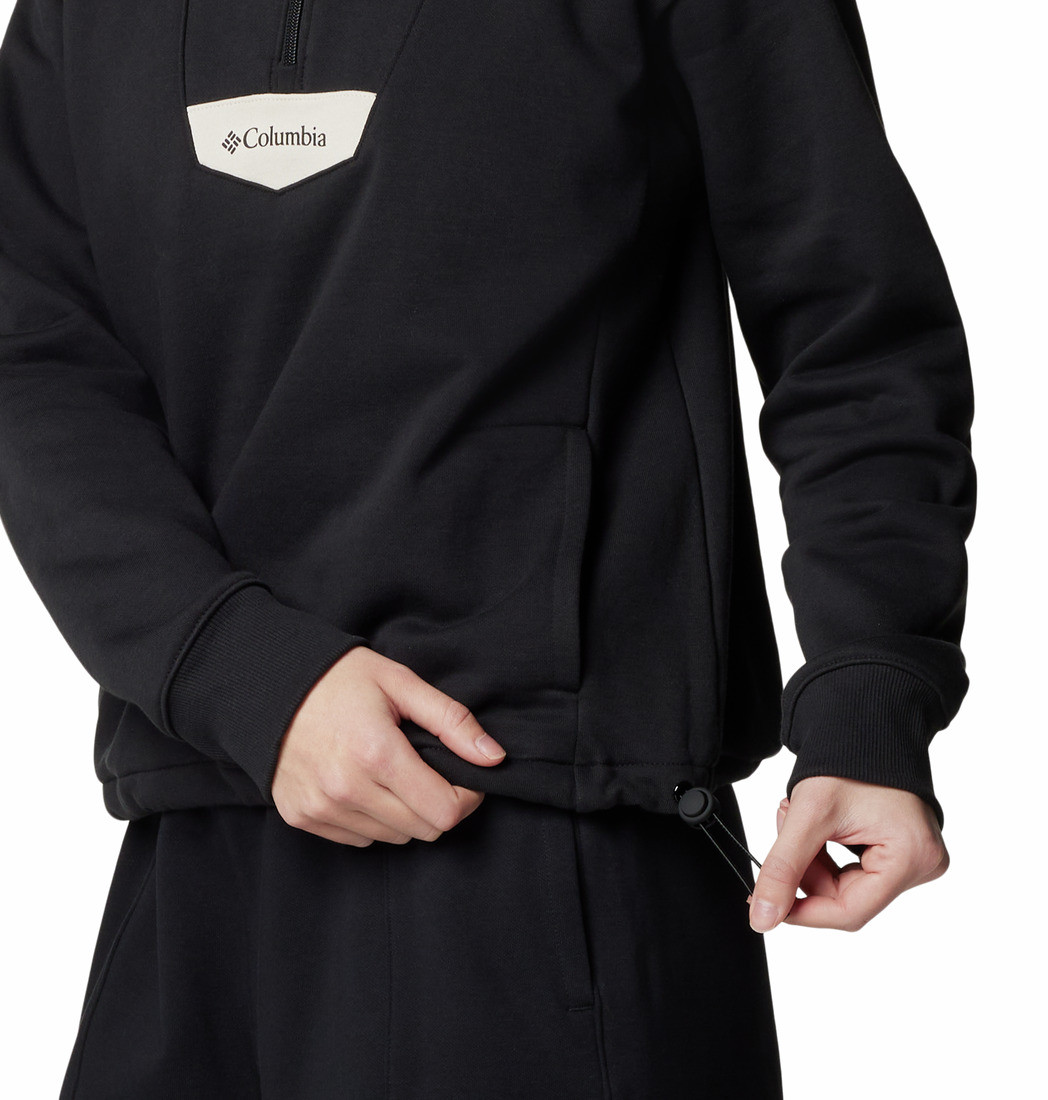 Side pockets secure items and keep hands toasty, while a drawcord hem adjusts to the perfect fit.