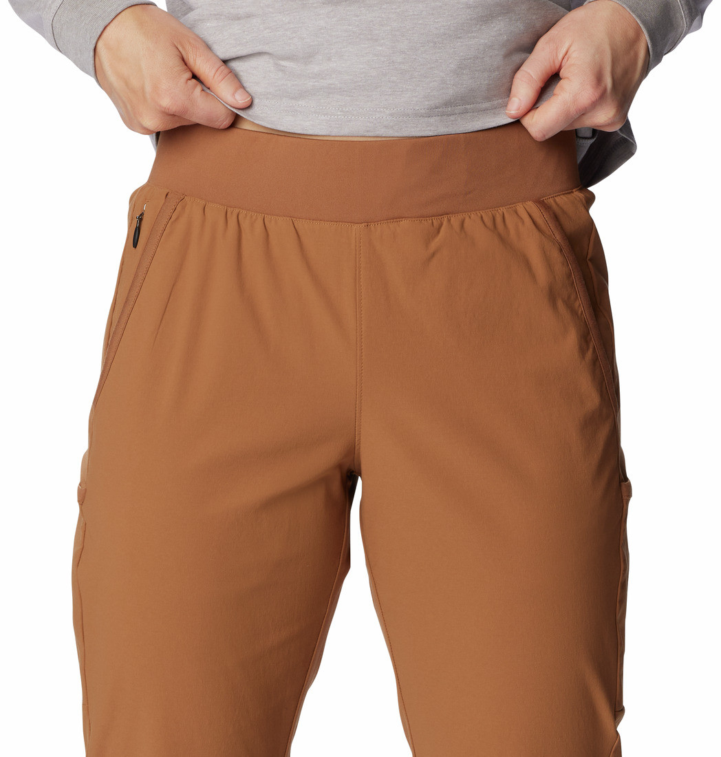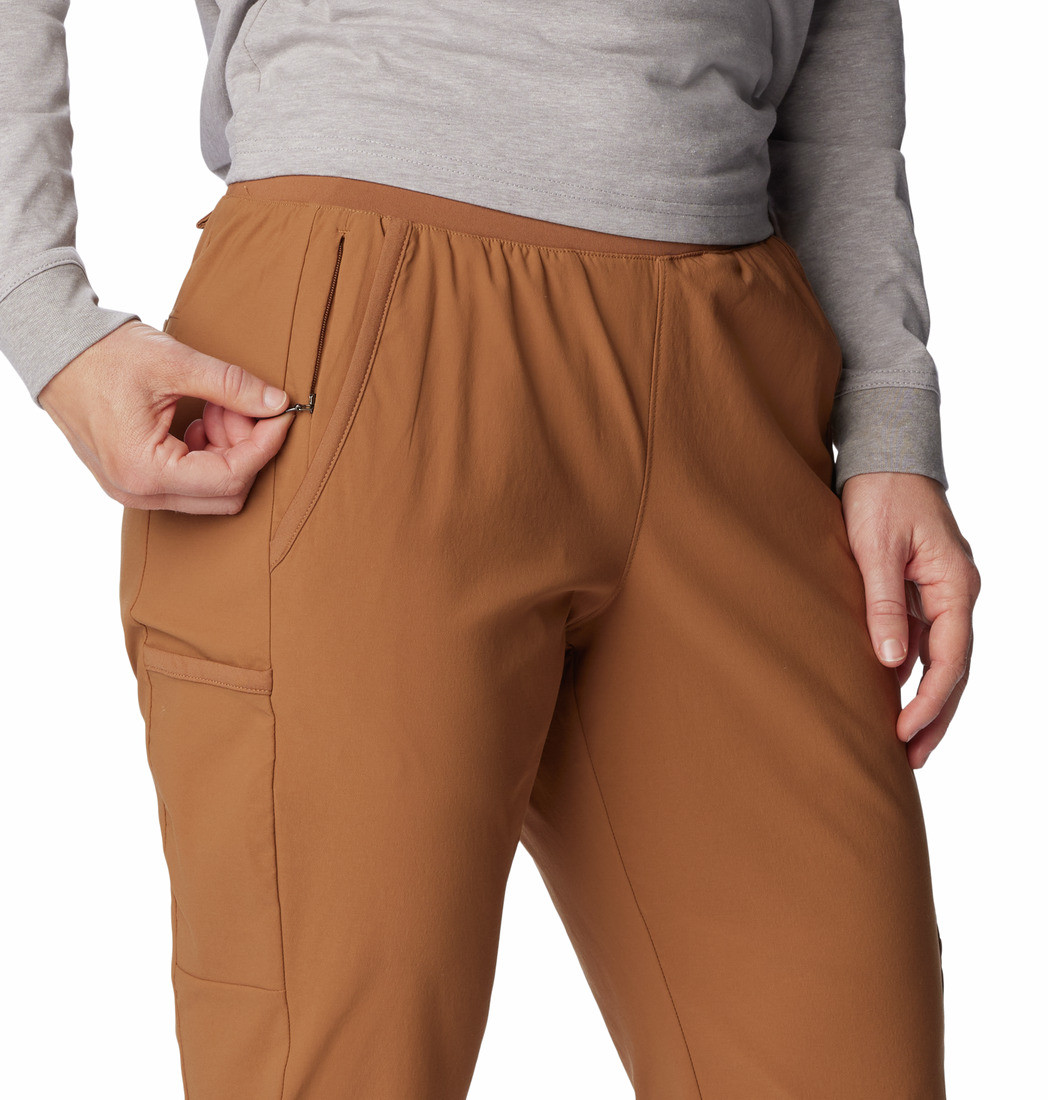 Six pockets: drop-in pockets on each leg, zippered security pocket on right side, back drop-in pocket, and hand pockets
