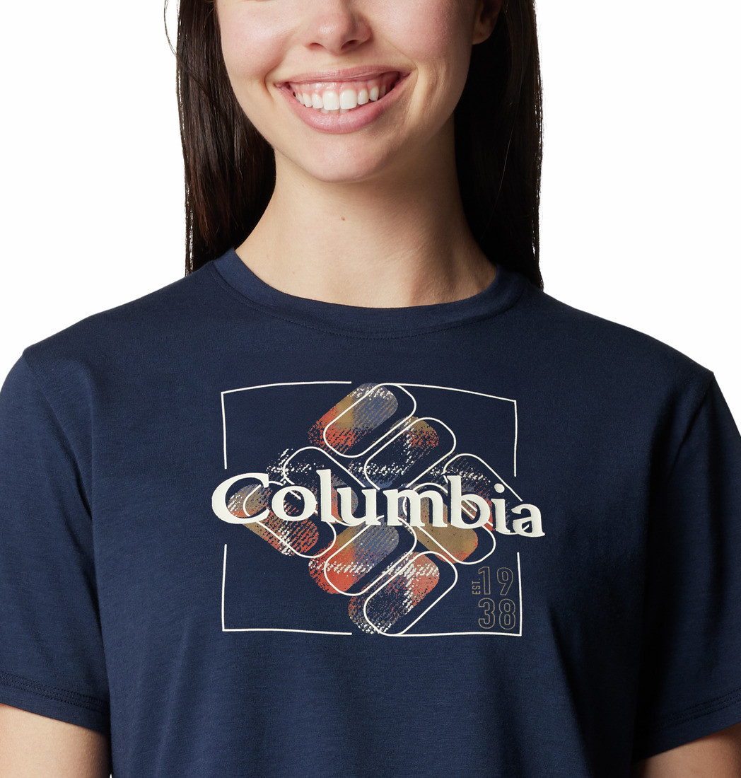 The colourful graphic print at the front of the T-shirt adds a vibrant touch to the hiking wardrobe.