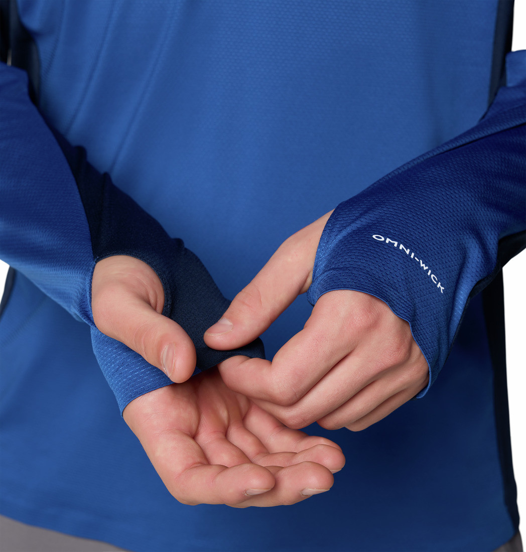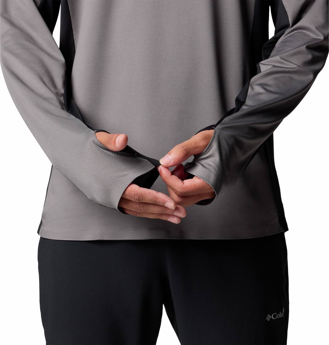 • Thumbholes on the cuffs help keep sleeves in place and add coverage over your hands