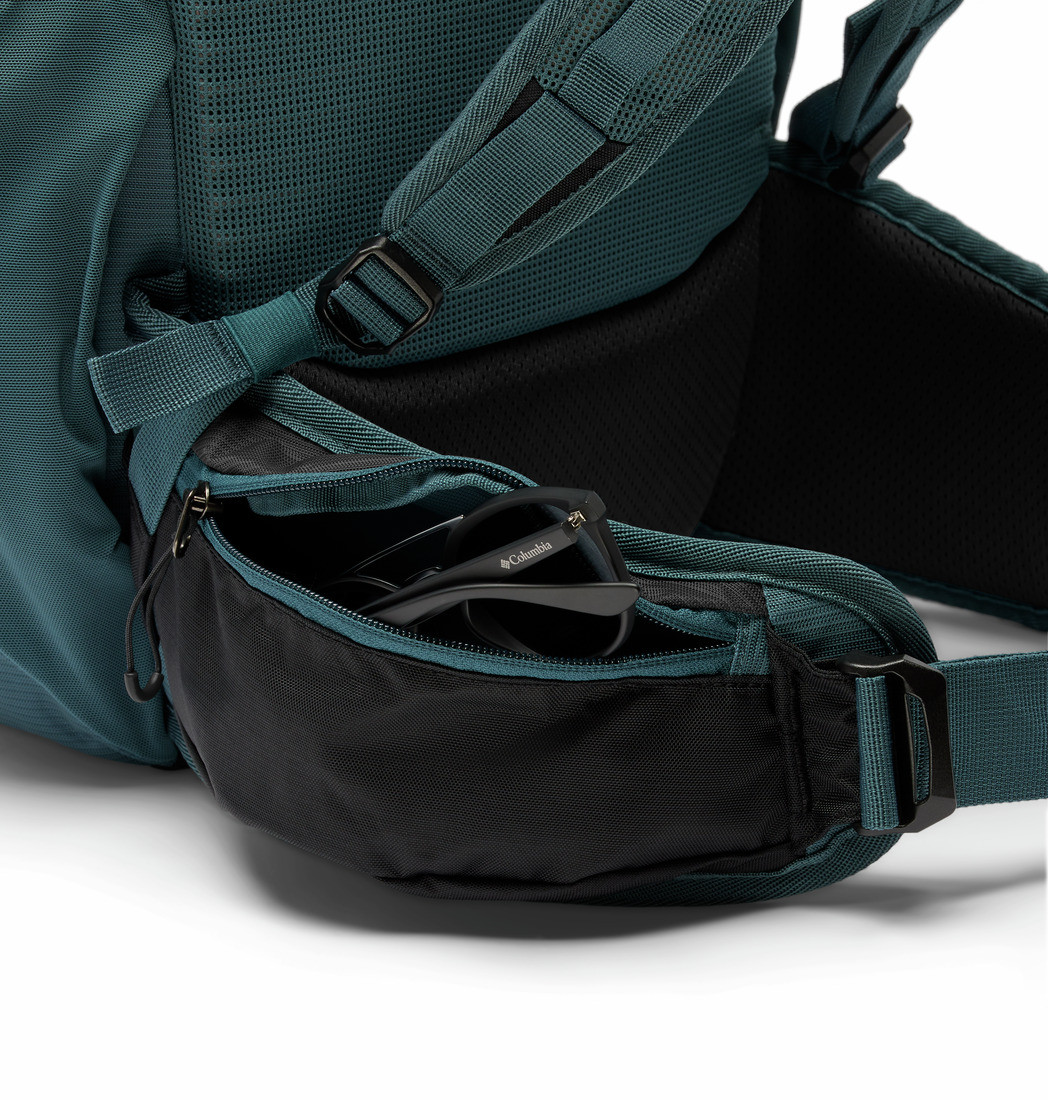 Ergonomic padded hip belt distributes weight, while its zippered pockets hold snacks, hand sanitizer, sunglasses, or other small items you need on the fly